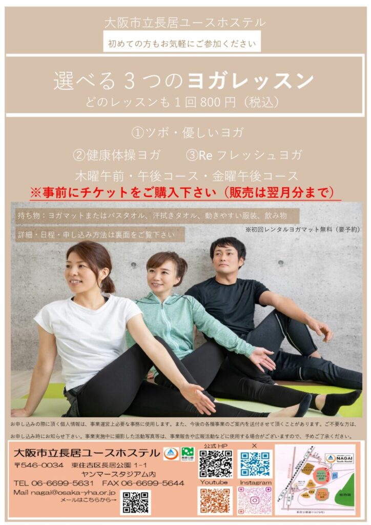 選べる3つのヨガレッスン(長居ユースホステル)