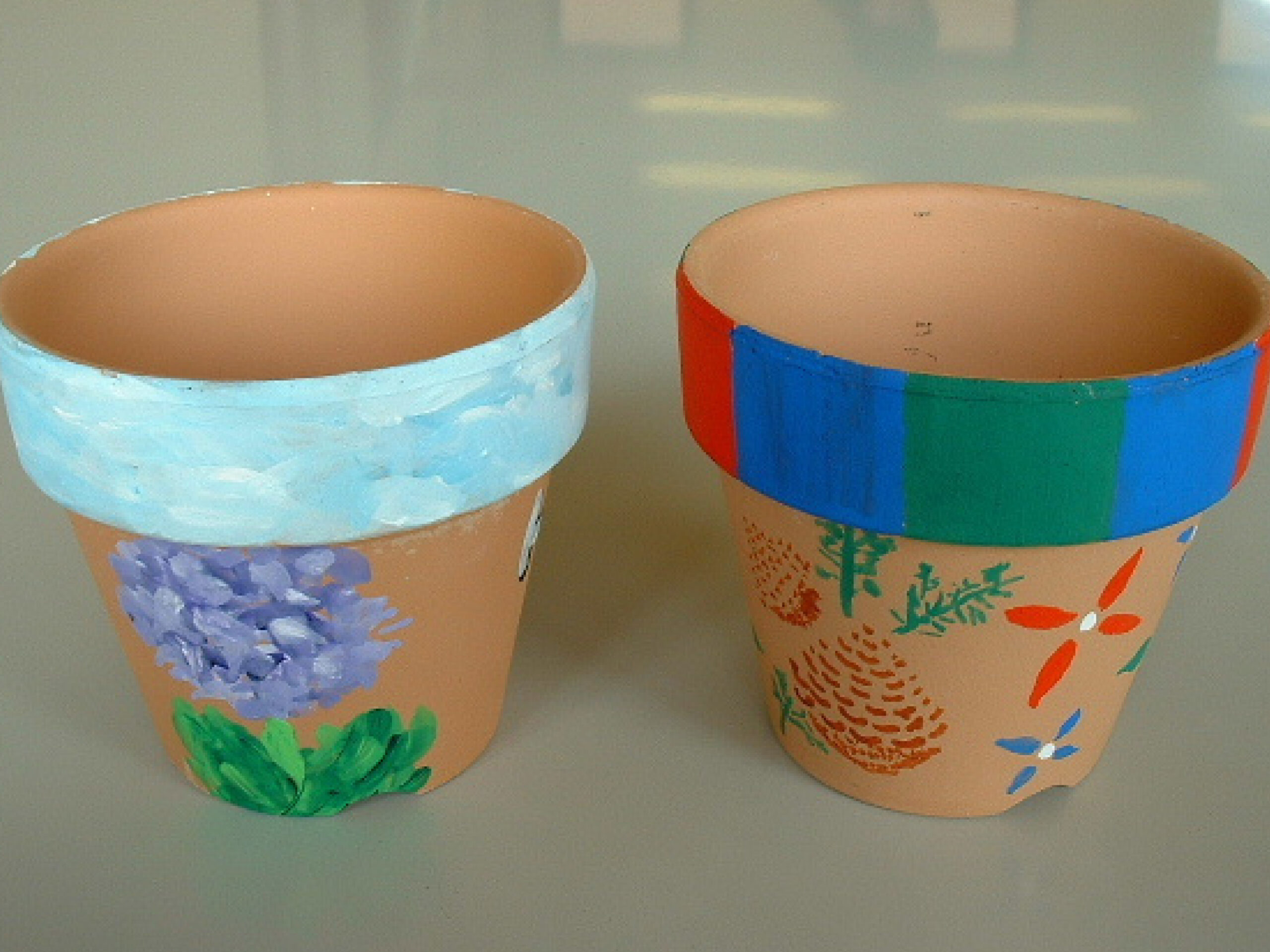 アクリル絵の具で植木鉢にペインティング!水にぬれても消えにくいので、お家で植物を植えたり、お部屋のインテリアにしてもステキです!